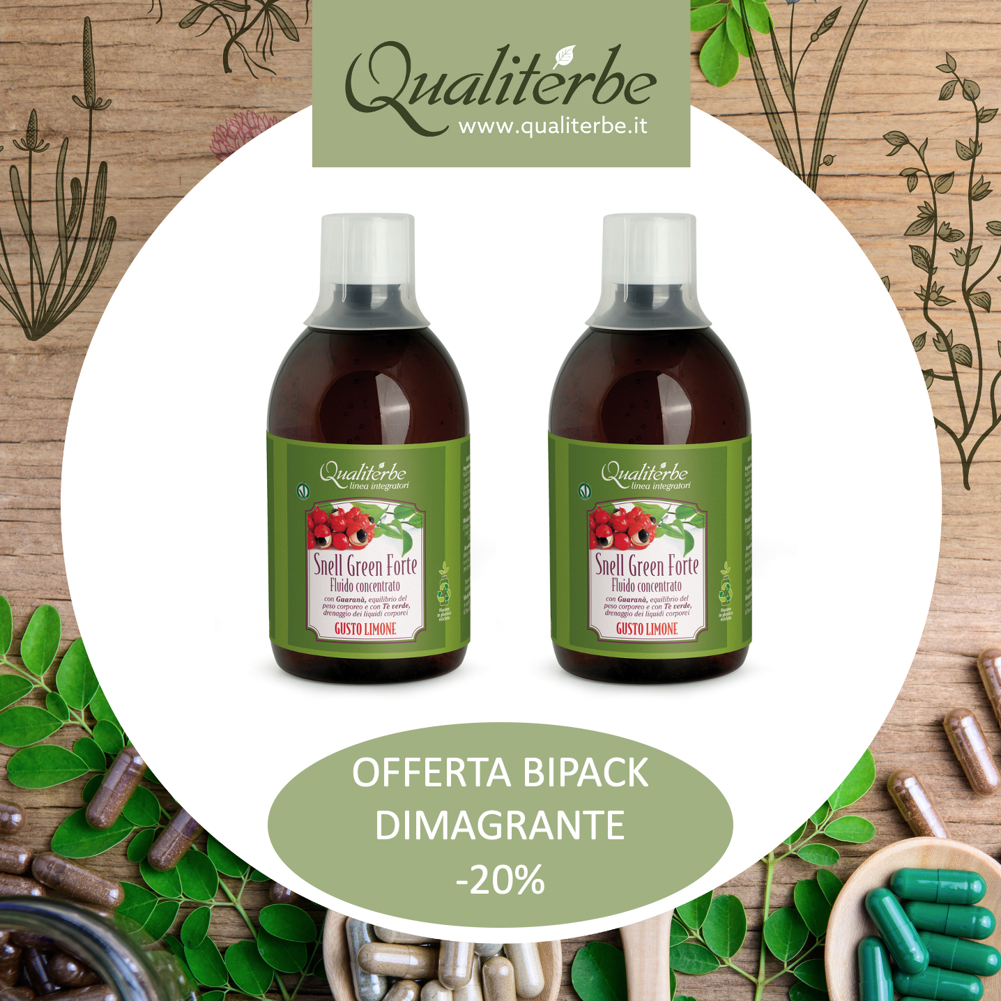 Guaranà, Momordica, Tè Verde, Olivo, Gymnema, Moringa.