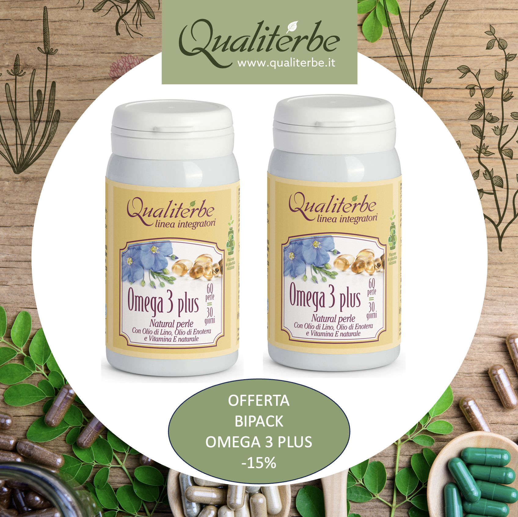 Prodotto ricco di molteplici proprietà, appositamente formulato per garantire un elevato apporto di Acidi grassi polinsaturi Omega 3-6-9 utili nel controllo del colesterolo e dei trigliceridi, grazie alla spiccata attività vasoprotettrice esplica un'azione positiva sulla funzionalità cardiaca. Consigliato nel trattamento dei disturbi premestruali (alterazione del tono dell'umore, irritabilità, dolorabilità al seno), svolge anche un efficace azione generale di tipo antinfiammatorio.