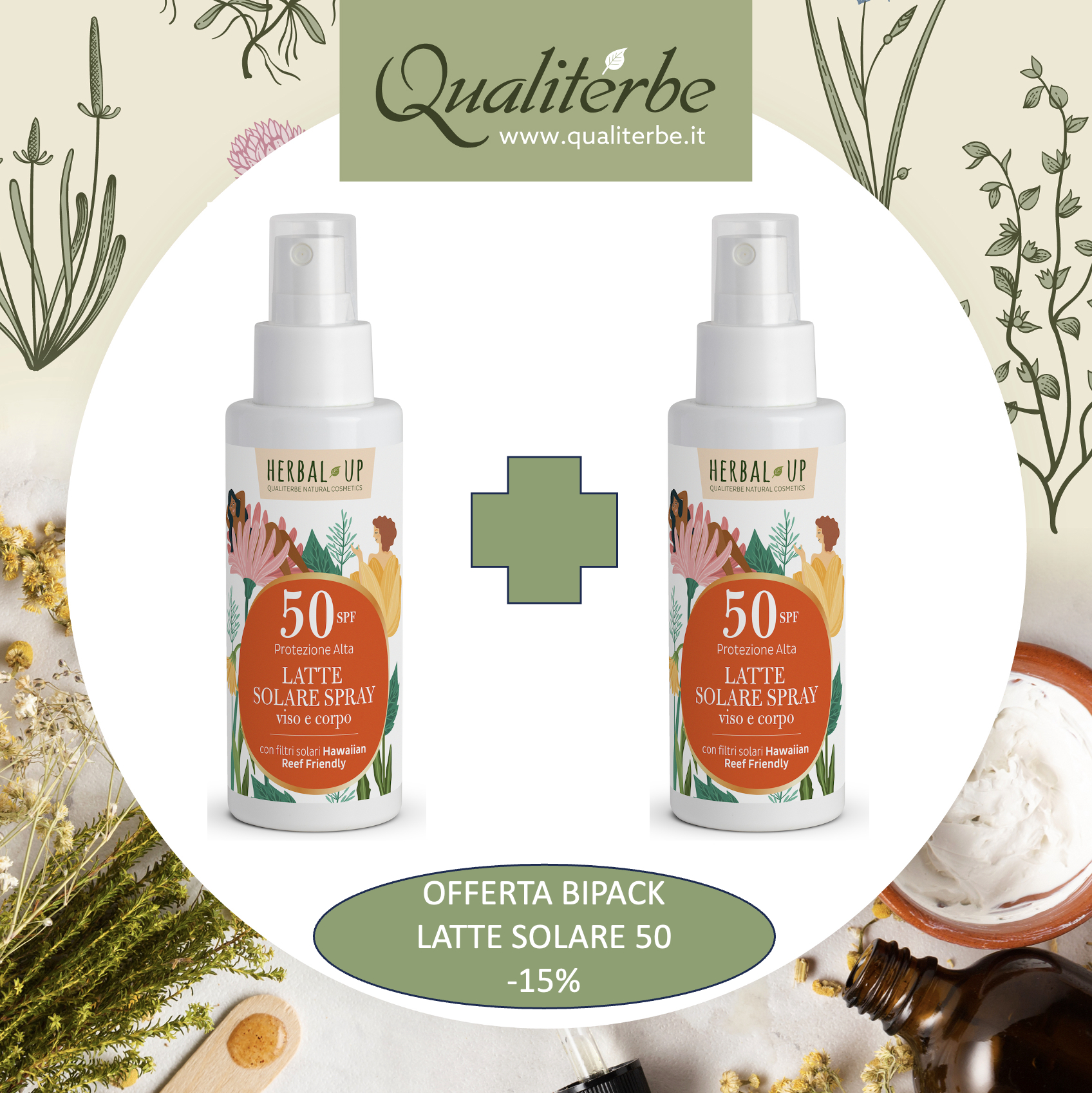 Il Bipack Latte Solare SPF 50 di Qualiterbe include due flaconi di latte solare ad alta protezione, ideale per tutti i tipi di pelle. Formulato con emulsionanti di origine naturale, offre protezione efficace contro i raggi UVA e UVB. Dermatologicamente testato e adatto anche ai bambini, contiene filtri approvati dalla normativa Hawaiian Reef Friendly Act. Certificato Vegan OK, senza parabeni, PEG e OGM, garantisce una protezione solare sicura e rispettosa dell'ambiente.