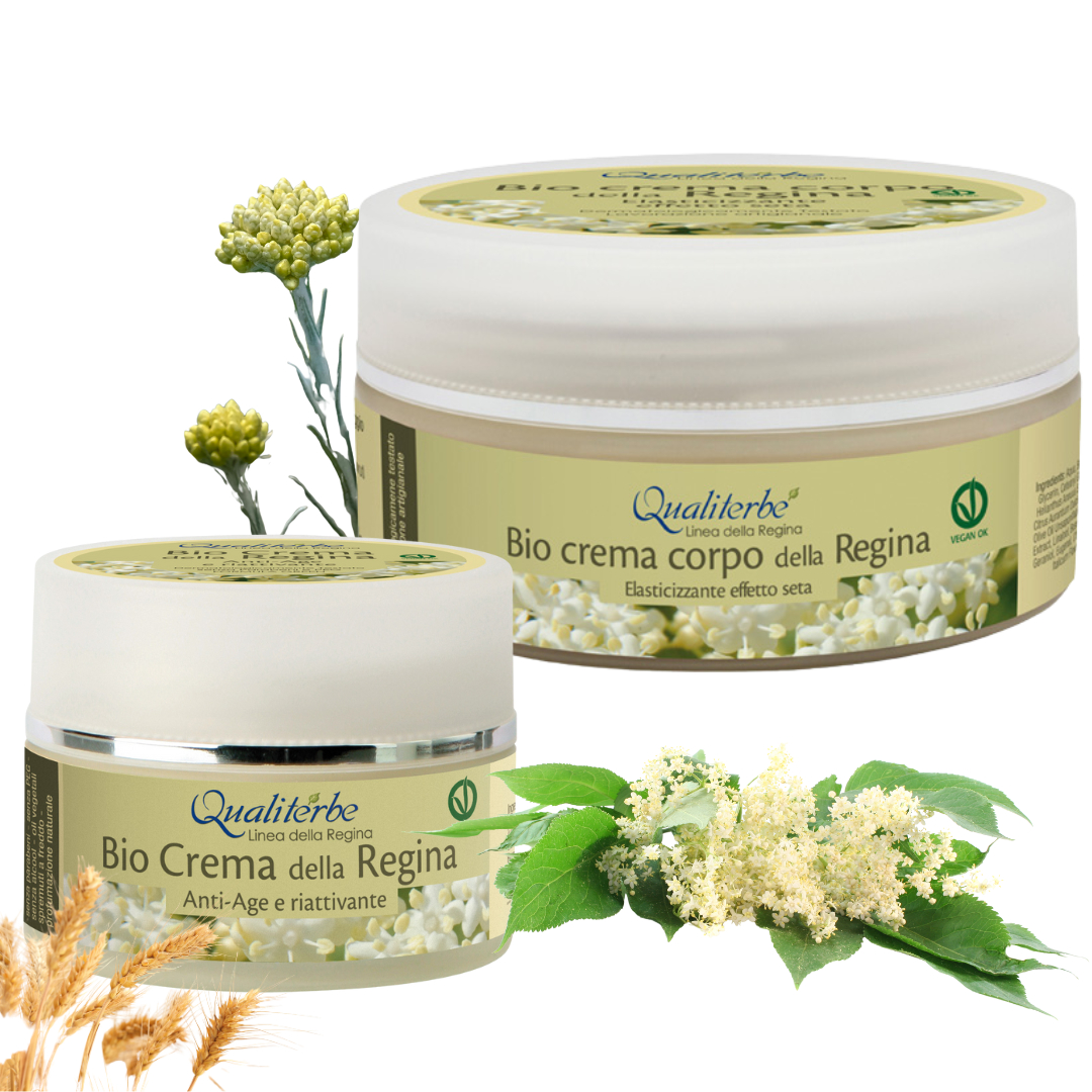 Bio Crema Corpo della Regina Elasticizzante Effetto Seta 200 ml → nutre e rassoda i tessuti, lasciando la pelle morbida e vellutata.