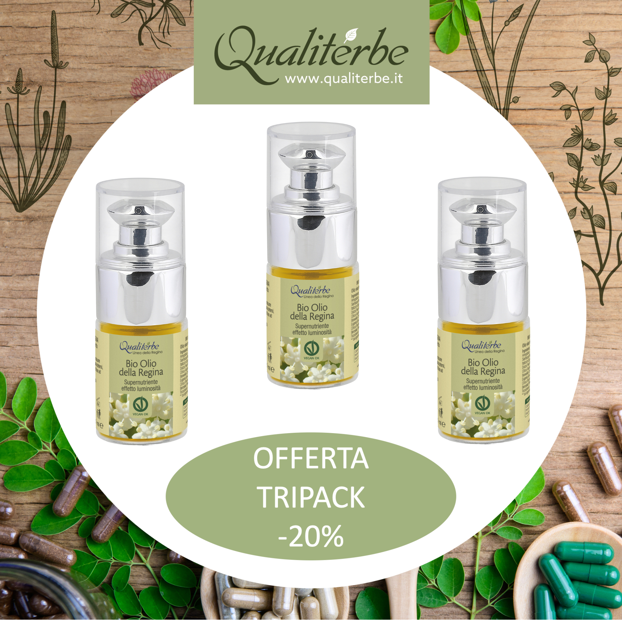 L'Olio della Regina è una esclusiva e ricercatissima miscela di oleoliti ad alto contenuto di principi attivi rigeneranti ed antiossidanti, in grado di contrastare in modo efficace i segni del tempo.