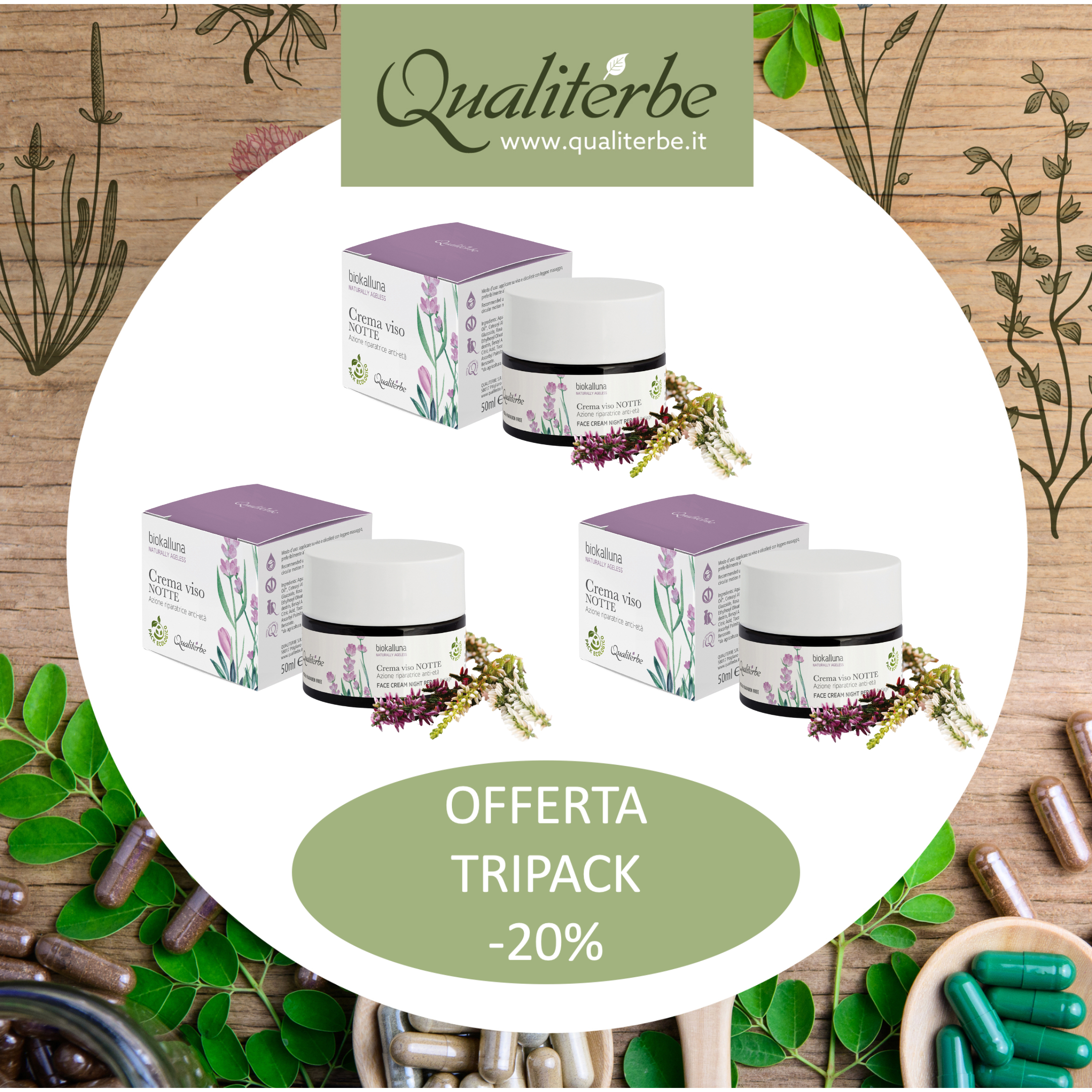 La somma degli ingredienti attivi, uniti alle singolari proprietà dell'estratto di Calluna, nel promuovere la formazione del biofilm protettivo cutaneo e la sintesi di collagene, rendono il prodotto particolarmente efficace nell'applicazione serale.