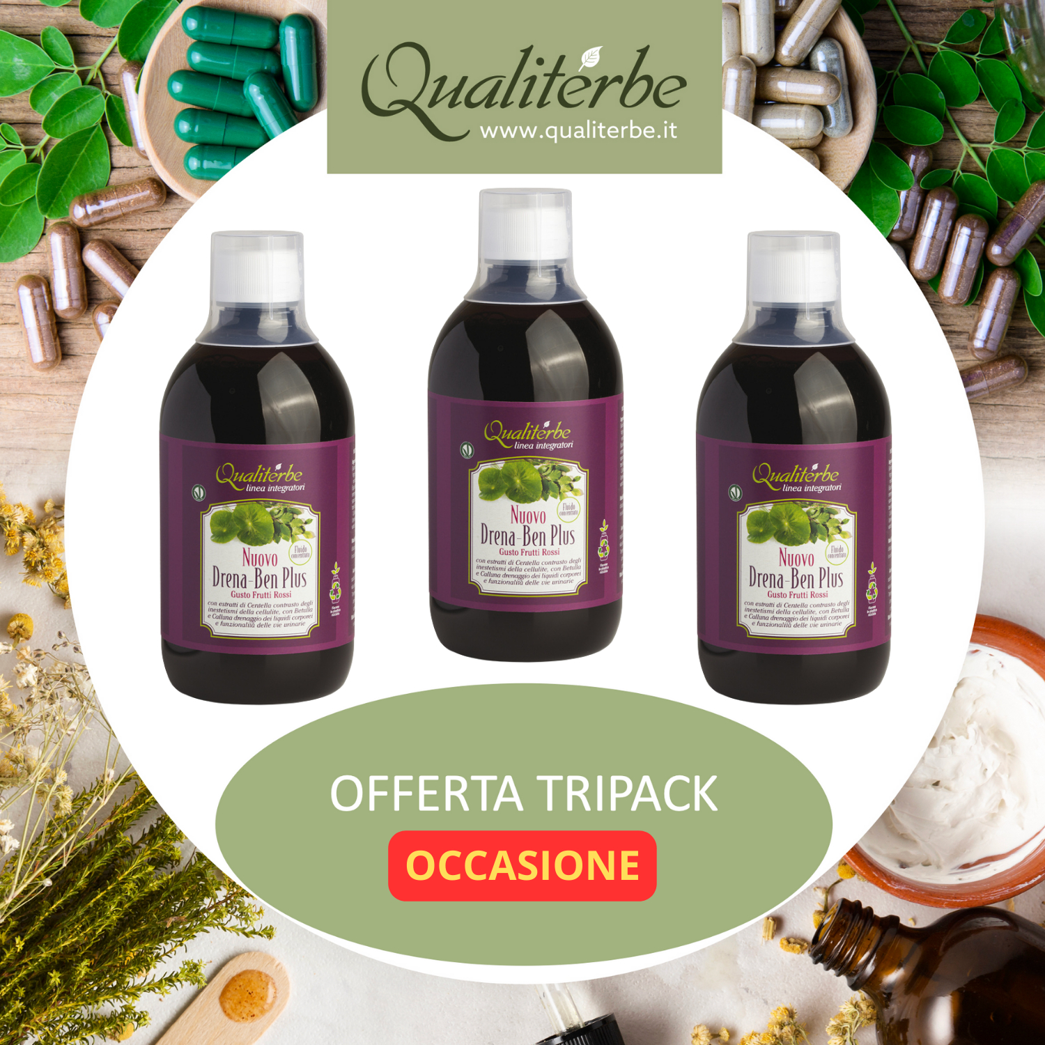 Pacchetto triplo di fluido ultra drenante naturale, ideale per il drenaggio e il benessere.