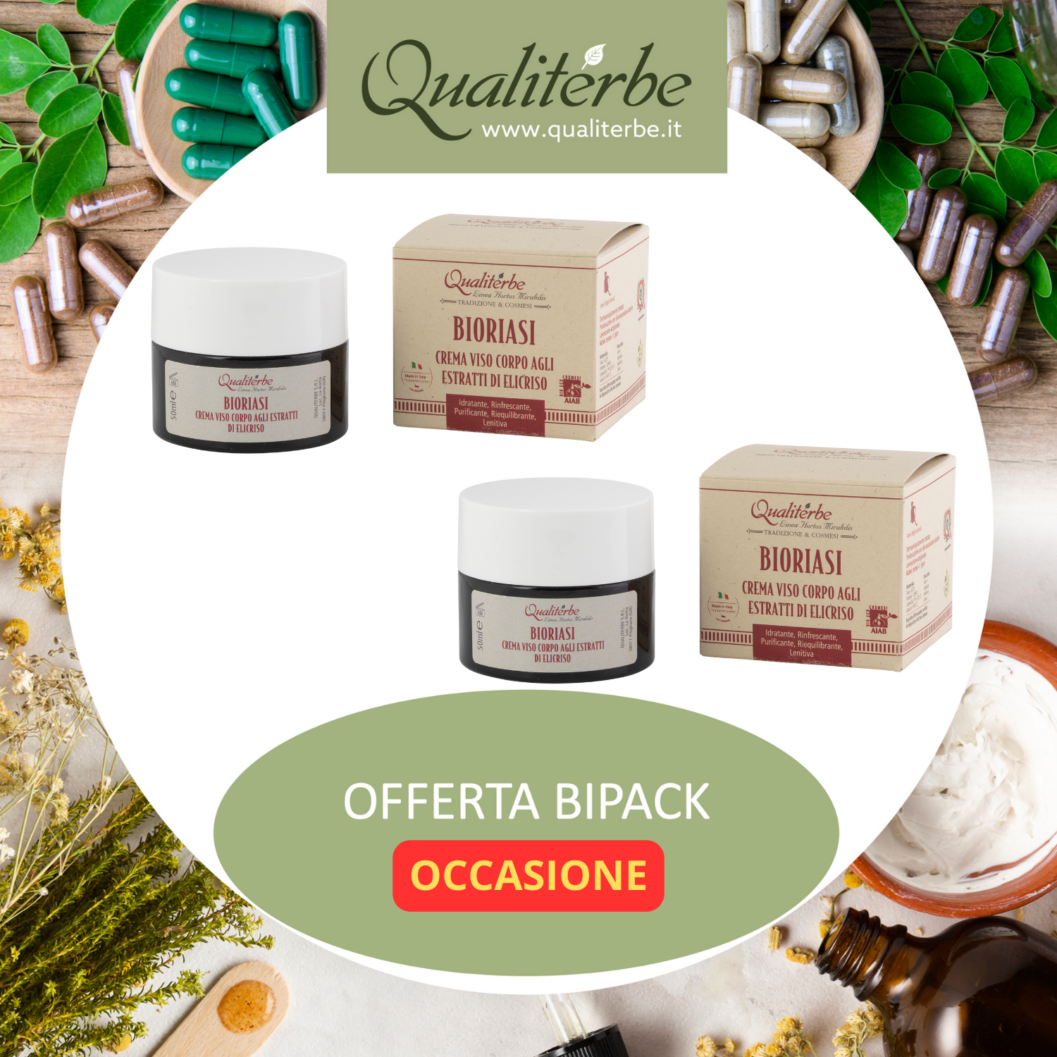 La Crema Biologica Viso e Corpo agli Estratti di Elicriso di Qualiterbe è particolarmente indicata per le pelli delicate e reattive. Grazie alla sua formula ricca di estratti di Elicriso, allevia irritazioni, prurito e arrossamenti. Eccellente coadiuvante in caso di psoriasi, dermatosi, eczemi ed eritemi solari, la crema ha proprietà riequilibranti, normalizzanti, lenitive e rinfrescanti. Dermatologicamente testata e con formula green senza parabeni, PEG e alcool.