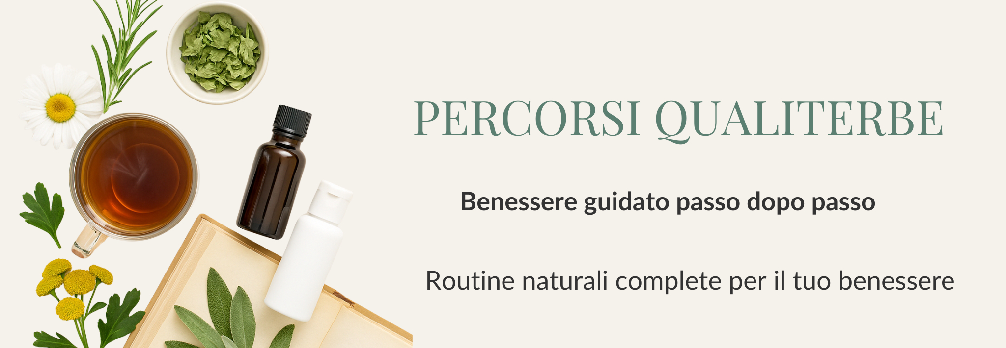 I Percorsi Qualiterbe sono la soluzione più semplice e conveniente per chi desidera prendersi cura di sé con la forza della natura. Abbiamo selezionato e combinato i migliori prodotti erboristici per creare routine guidate, pronte all’uso, che ti accompagnano passo dopo passo verso il tuo obiettivo di benessere.