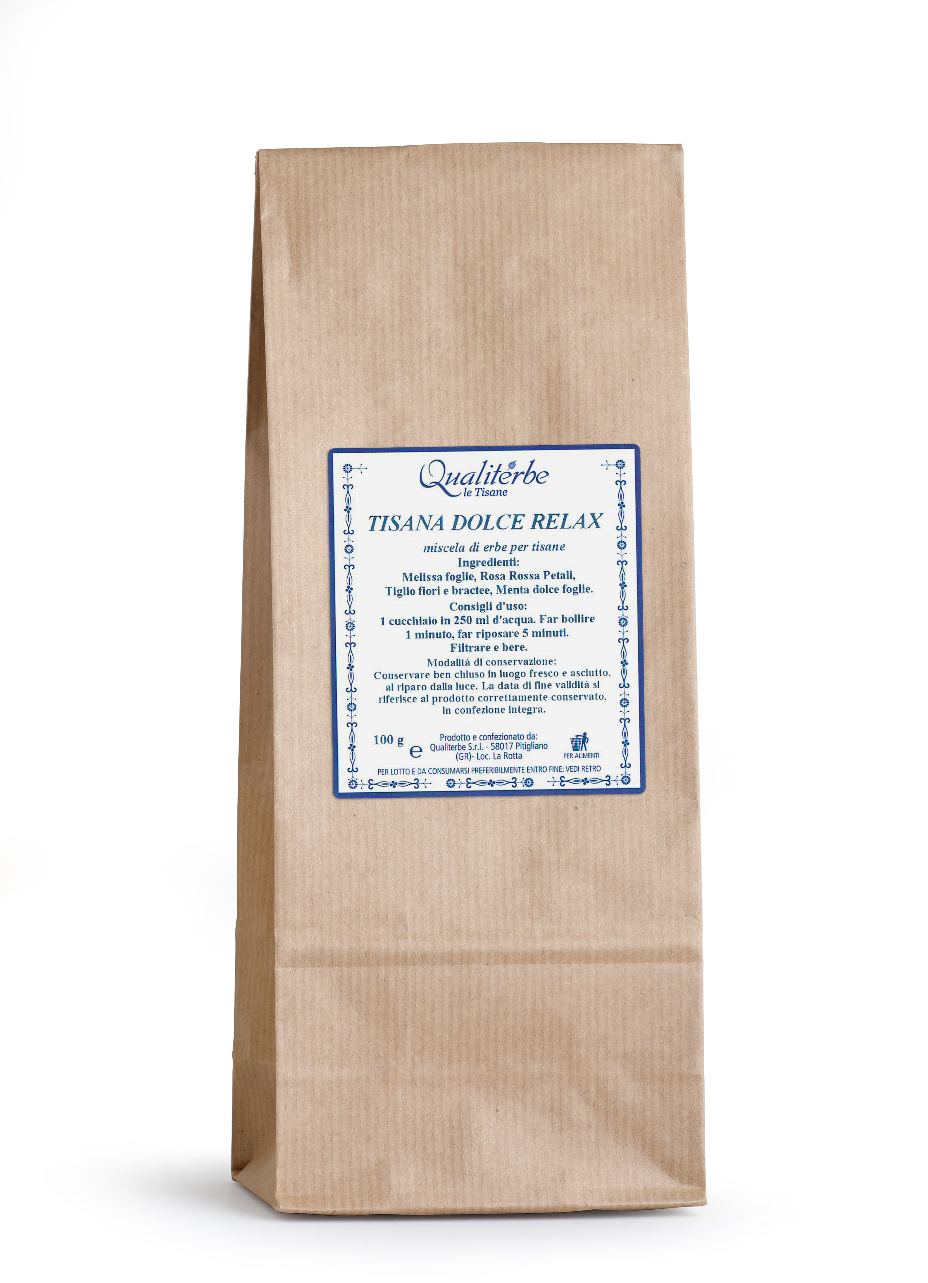 Una confezione da 100 g di Tisana Dolce Relax.
