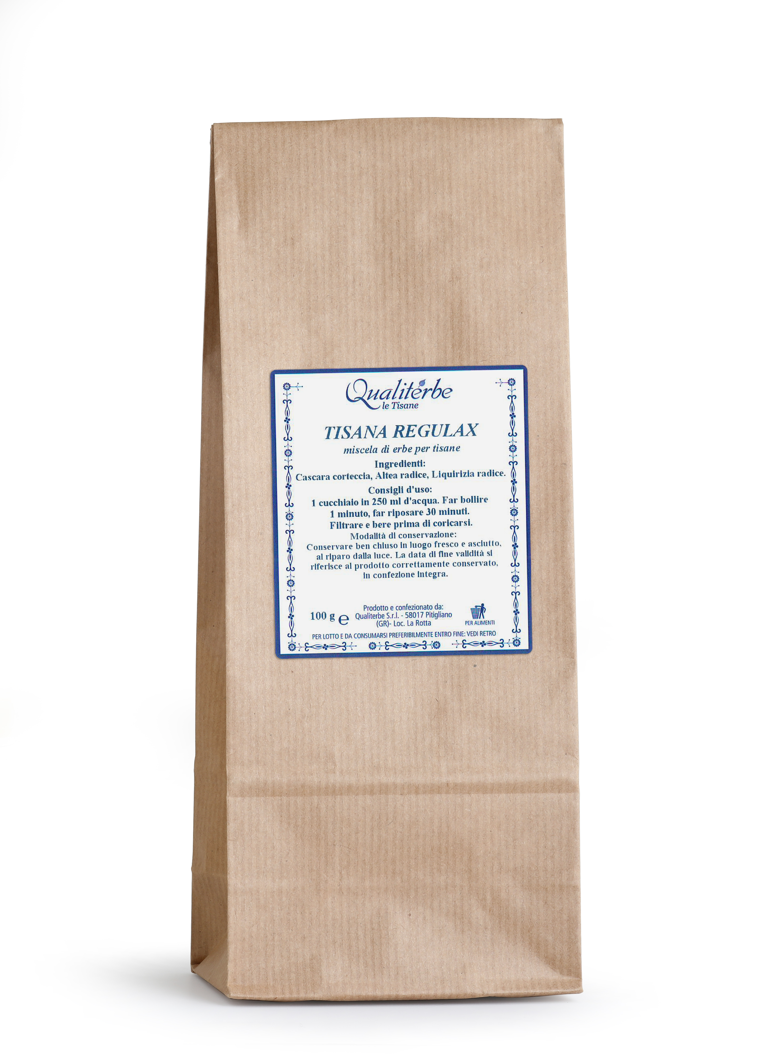 Una confezione da 100 g di Tisana Regulax N.2.